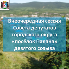 В четверг 16 октября, в 16.00 в актовом зале Администрации по улице Обухова здание 6 состоится внеочередное заседание Совета депутатов городского округа "поселок Палана" девятого созыва.